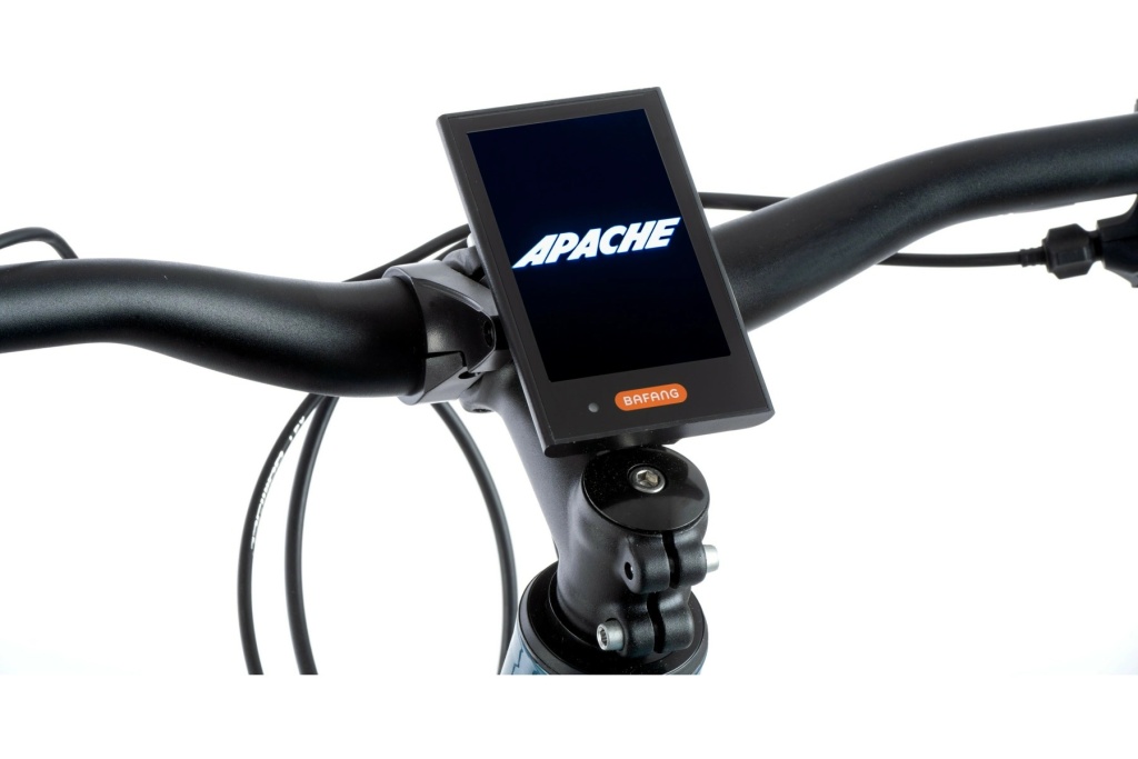 Elektrokola Apache osazujeme uzavřeným systémem Bafang - motor, baterie, displej, řídící jednotka, elektrické kabely a nabíječka od jedné firmy (podobně jako systém BOSCH). Kompletní systém Bafang je dlouhodobě testován a certifikován výrobcem jako funkční celek, který dohromady funguje mnohem lépe, stabilněji a s vyšším výkonem a dojezdem, než když je složen z komponentů od různých výrobců.