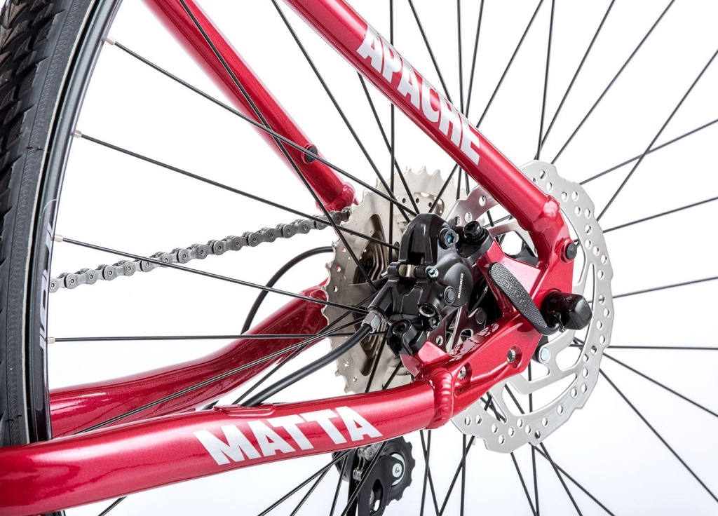 Apache Matta Bosch 3 je dámské krosové elektrokolo s hliníkovým rámem, které je vybaveno středovým motorem Bosch Active Line Gen. 3, baterií o kapacitě 500 Wh, pohonem Shimano 1x9, odpruženou vidlicí a koly o průměru 28 palců.
