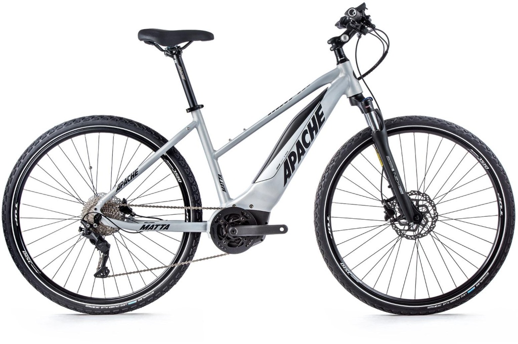 Apache Matta Bosch 3 je dámské krosové elektrokolo s hliníkovým rámem, které je vybaveno středovým motorem Bosch Active Line Gen. 3, baterií o kapacitě 500 Wh, pohonem Shimano 1x9, odpruženou vidlicí a koly o průměru 28 palců.