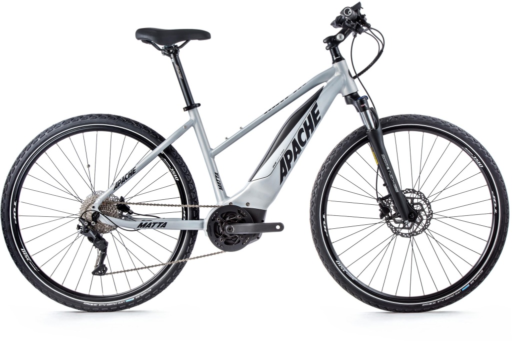 Apache Matta Bosch 1 je dámské krosové elektrokolo s hliníkovým rámem, které je vybaveno středovým motorem Bosch PF Line Gen. 3, baterií o kapacitě 500 Wh, pohonem Shimano 1x10, odpruženou vidlicí a koly o průměru 28 palců.