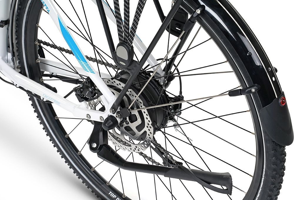 Základem elektrokola je lehký rám vybavený tichým nábojovým motorem a baterií, se kterou se na jedno nabití můžete vydat například na výlet z Prahy k Máchovu jezeru. Při každé své jízdě se můžete spolehnout na odpruženou vidlici SR Suntour i na hydraulické brzdy nebo řazení Shimano. Samozřejmostí je výbava jako hliníkový nosič, stojánek či blatníky. Elektrokolo Matta je zkrátka připraveno vyrazit objevovat nová místa, tak kam to bude?