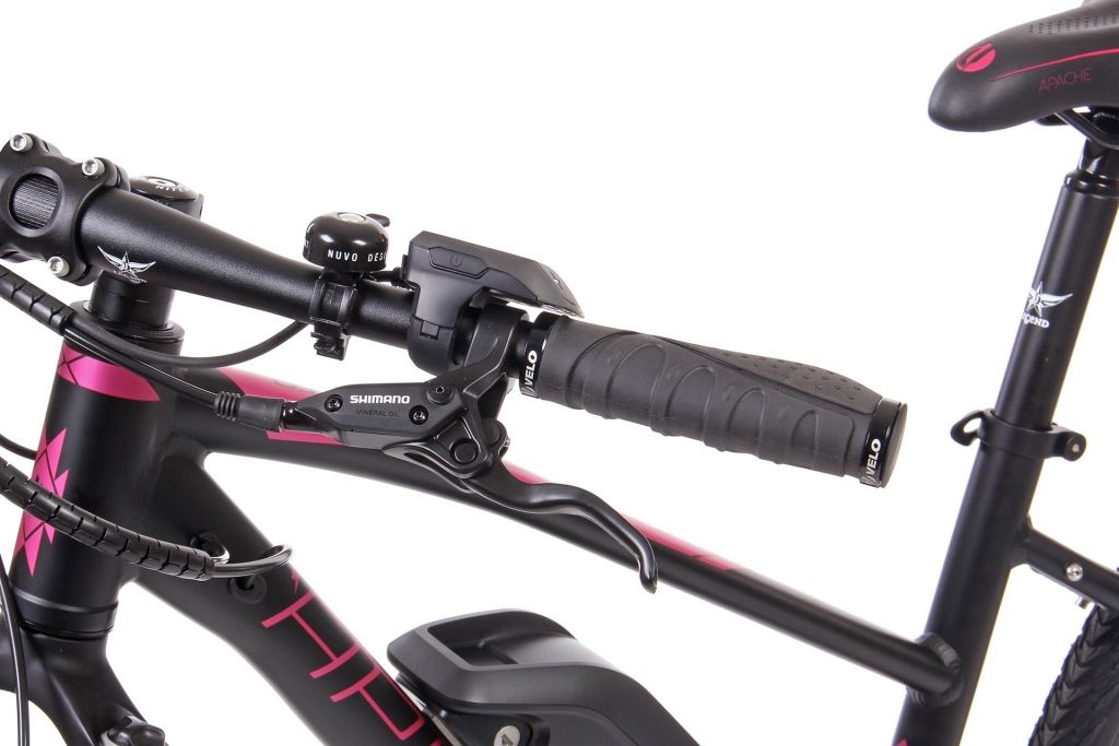 Apache Matto Lady Bosch Performance je sportovní krosové elektrokolo, které vyhoví těm nejvyšším nárokům na stroje této kategorie kladené. Nejlépe vybavený model v naší nabídce se může pochlubit lehkým a zároveň tuhým hliníkovým rámem, kvalitní vzduchovou vidlicí se zamykáním z řídítek a spolehlivým desetirychlostním řazením. Při šlapání vám bude asistovat špičkový středový elektromotor s vysokým točivým momentem, s jehož pomocí hravě zdoláte i ta nejnáročnější stoupání na trase. S tímto elektrokolem tak můžete vyrazit, kamkoliv se vám jen zamane. Na výlet s rodinou, na svižnou kondiční vyjížďku, do města i do zaměstnání. Zavítat při tom můžete nejen na silnice a cyklostezky, ale i na zpevněné lesní a polní cesty. Fantazii se zde zkrátka meze nekladou.