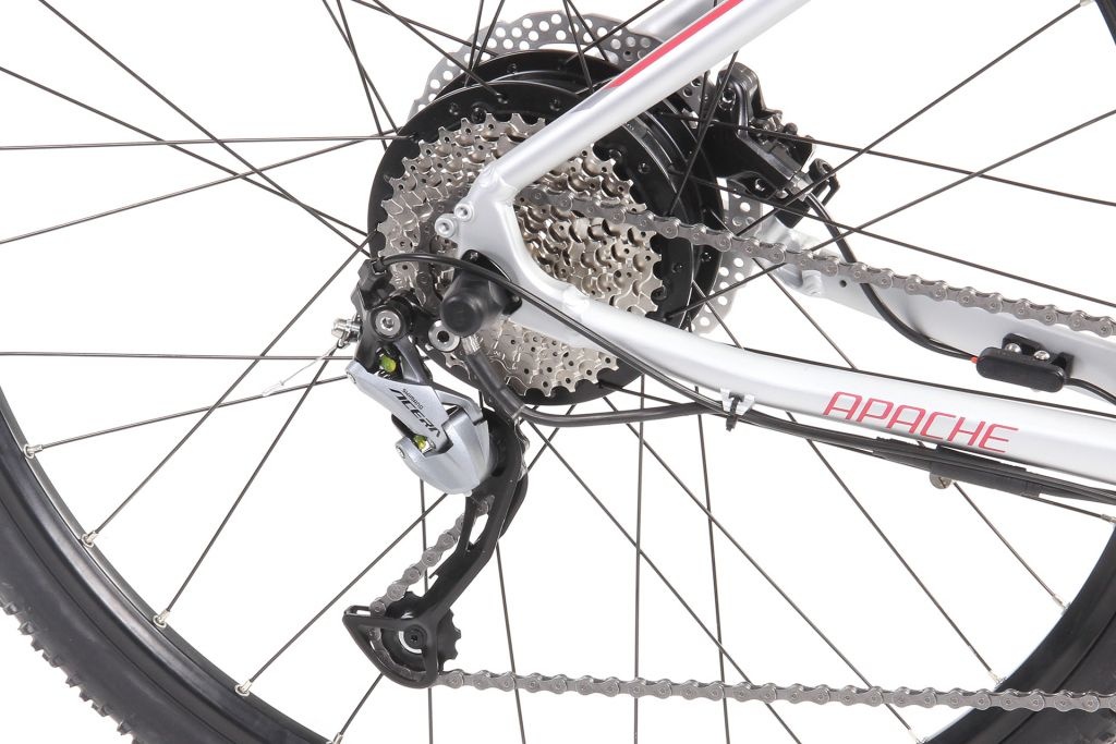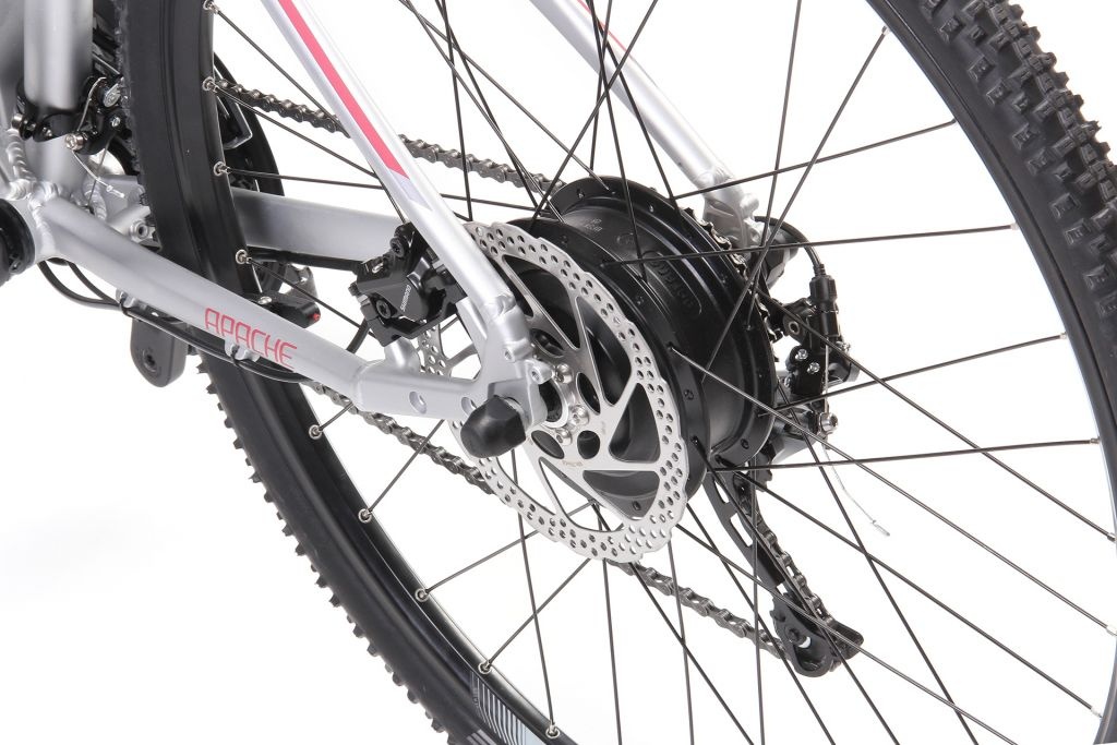 Pohonný systém Apache Power Silent Plus s elektromotorem Bafang zapleteným ve středu zadního kola. V běžném jízdním režimu má tato pohonná jednotka nominální výkon 250 W a maximální točivý moment až 45 Nm. Po přepnutí do takzvaného off-road režimu stoupne výkon motoru o dalších 100 W až na konečných 350 W. Nastavení motoru lze díky chytrému softwaru kdykoliv snadno změnit, včetně možnosti zvýšení rychlostních limitů a přizpůsobení výkonu pro jednotlivé režimy asistence.