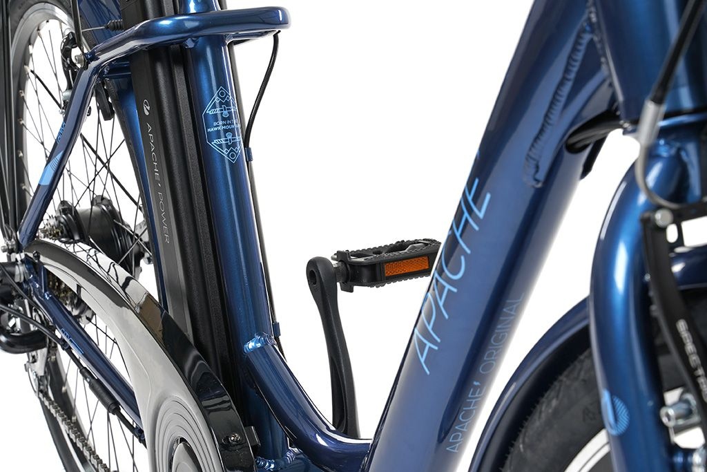 Jízdu ve městě vám zpříjemní tichá pohonná jednotka Apache Power Silent s elektromotorem Silent, který je zapletený ve středu zadního kola. Nominální výkon motoru je 250 W s maximálním točivým momentem až 32 Nm. Systém je vybaven takzvanou sinusovou technologií řízení, která se vyznačuje velmi tichým chodem a efektivnějším využitím energie. Vaše elektrokolo tak získává vyšší dojezd na jedno nabití a rozšiřuje vaše možnosti.