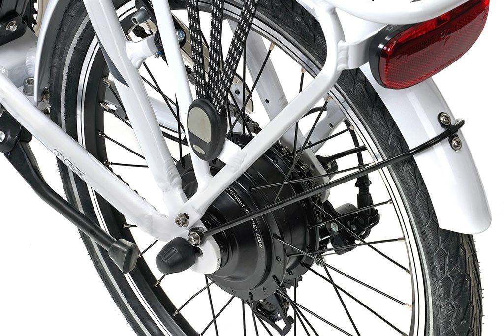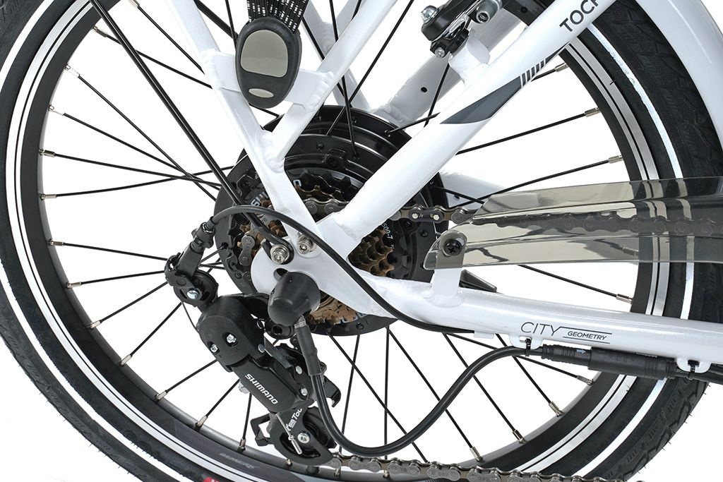 Rychlé a jednoduché složení. Elektrokolo Tocho je postaveno na skládacím rámu s nízkým nástupem a baterií za sedlovou trubkou, čímž dosáhlo lepšího rozložení hmotnosti a tudíž výborné stability. Nechybí ani komfortní výbava, jako je zadní nosič nebo blatníky v barvě rámu. Při jízdě je velice důležitá vaše bezpečnost a na elektrokole tak najdete reflexní pruh na pláštích a osvětlení napájené z baterie. To vše se vejde do kufru vašeho automobilu či úložného prostoru karavanu.
