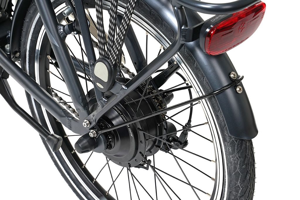 Rychlé a jednoduché složení. Elektrokolo Tocho je postaveno na skládacím rámu s nízkým nástupem a baterií za sedlovou trubkou, čímž dosáhlo lepšího rozložení hmotnosti a tudíž výborné stability. Nechybí ani komfortní výbava, jako je zadní nosič nebo blatníky v barvě rámu. Při jízdě je velice důležitá vaše bezpečnost a na elektrokole tak najdete reflexní pruh na pláštích a osvětlení napájené z baterie. To vše se vejde do kufru vašeho automobilu či úložného prostoru karavanu.