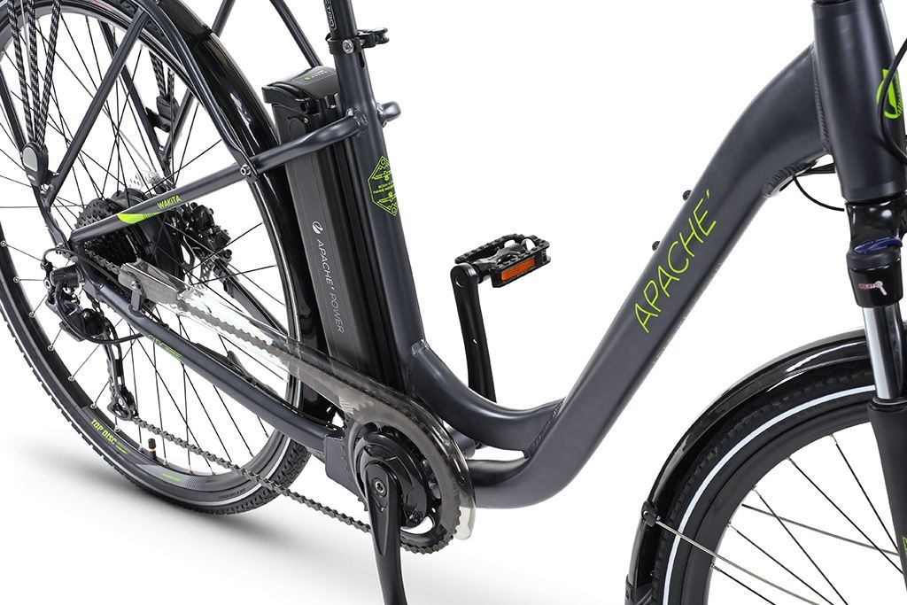 Tichý pohon Apache Power Silent s elektromotorem Bafang zapleteným ve středu zadního kola. Nominální výkon motoru činí 250 W, maximální točivý moment až 32 Nm. Systém je vybaven takzvanou sinusovou technologií řízení, která se vyznačuje velmi tichým chodem, efektivnějším využitím energie a tím pádem také vyšším dojezdem na jedno nabití.