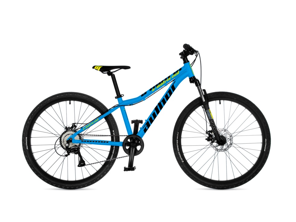 Juniorský model Author A-Matrix D 26 je univerzální kolo pro děti výšky 130–150 cm. Disponuje koly o průměru 26“ a speciálním sníženým duralovým rámem, díky čemuž i mladší nezkušený jezdec snadno projede i náročnější technické pasáže. K tomu mu dopomáhá i kvalitní značková odpružená vidlice RST. Neztratí se ale ani na asfaltu, díky většímu průměru kol snadno odvaluje a dovolí absolvovat i delší vyjížďky. Jeho další výhodou jsou účinné kotoučové brzdy Tektro, které zajistí bezpečné zpomalení za všech podmínek. O řazení se postará kvalitní 8rychlostní přehazovačka Shimano Acera ve spolupráci s moderním jednopřevodníkem. Spolehlivé a dobře ovladatelné kolo do každého terénu.