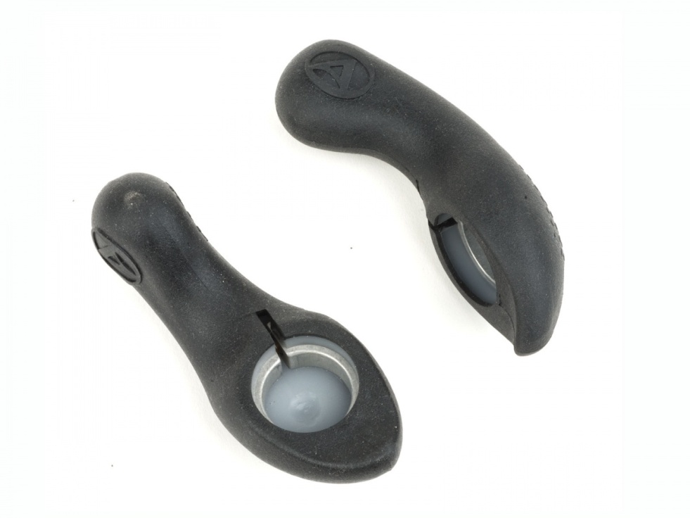 Krátké rohy, ergonomický tvar s měkkým povrchem, speciální vnitřní osazení pro možnost propojení s gripy s pojistnou objímkou řady AUTHOR Grip Lock.