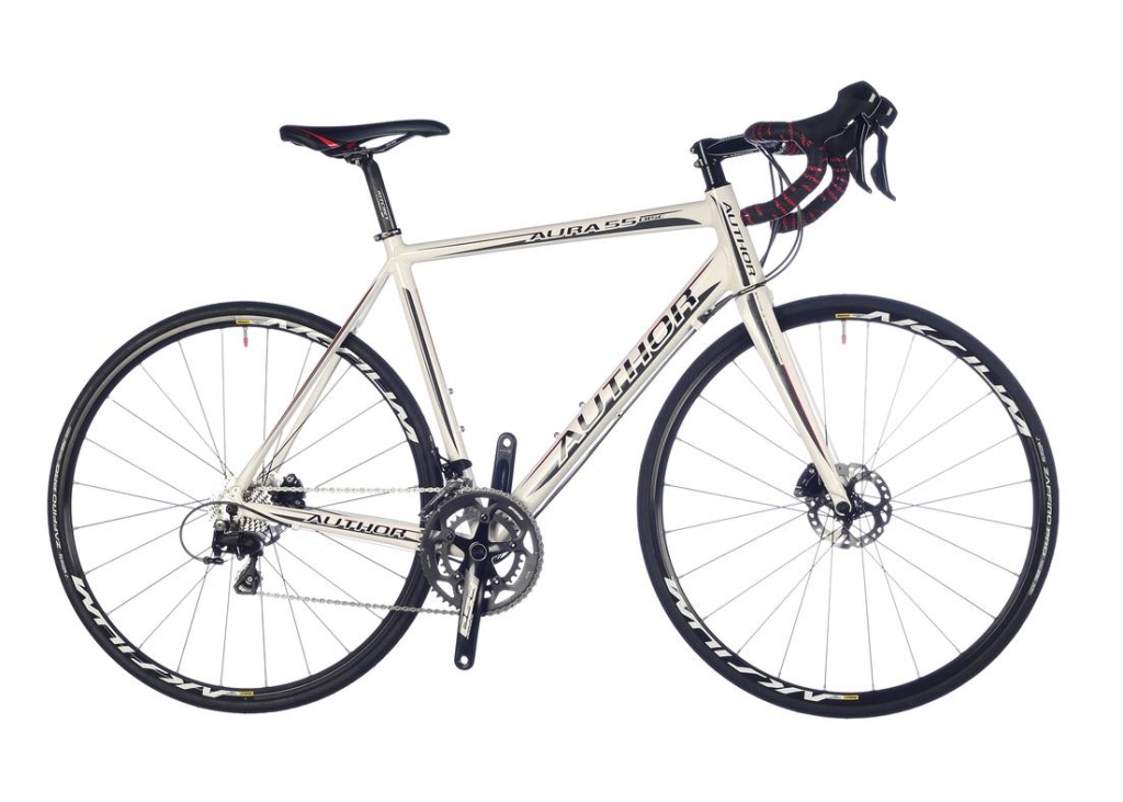 Silniční kolo Author Aura 55 disc je postavena na duralovém rámu s třikrát zeslabovanými trubkami a karbonové vidlici. Nejvyšší duralová silnička je novinkou pro rok 2016! Od své kolegyně Aury 55 se liší především přítomností kotoučových hydraulických brzd, které přesně dávkují brzdný výkon a kolo je tak perfektně ovladatelné. Kromě propracovaných konstrukčních prvků patří mezi její přednosti - komponentová dvaceti dvou rychlostní sada SHIMANO 105, kompakt převodník, zapletená kola MAVIC Aksium Elite, kevlarové pláště či karbonová sedlovka. Silniční stroj pro velmi náročné jezdce, kteří dávají přednost duralu.