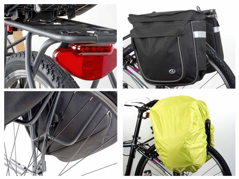 Součástí je nepromokavá pláštěnka na trojbrašnu.