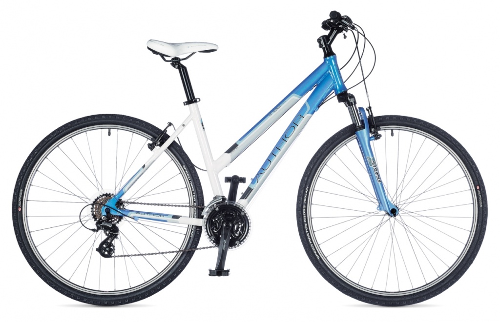 Dámské krosové kolo Author Linea s duralovým rámem a odpruženou vidlicí SUNTOUR.