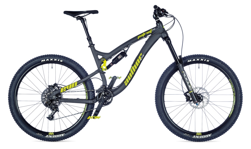 Celoodpružené kolo Author PATRIOT EVO s dvakrát zeslabovanými trubkami, vzduchovou vidlicí RST a originálním systémem DLP.