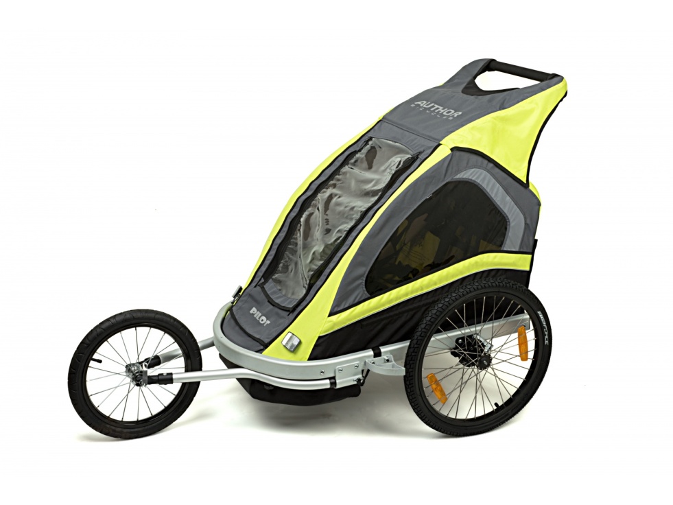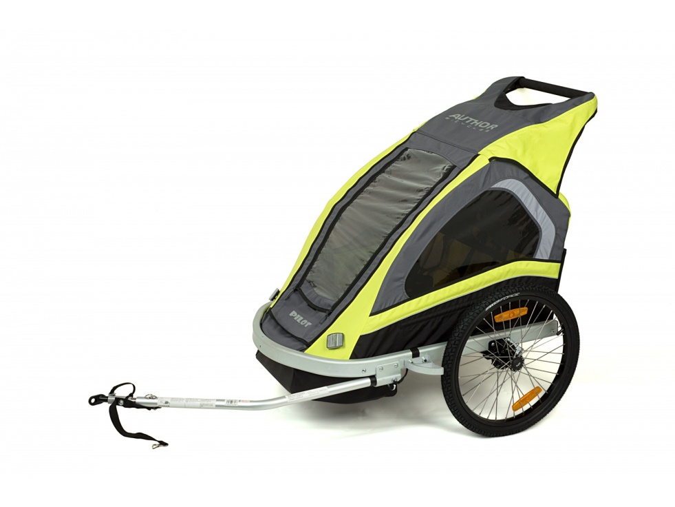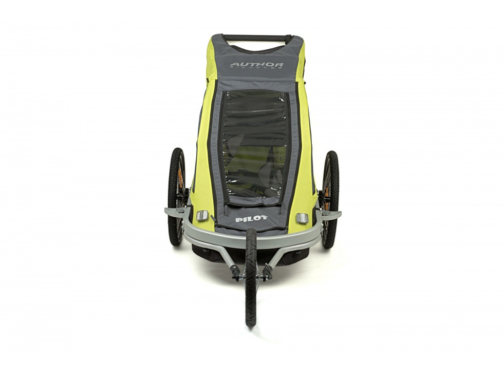 AUTHOR PILOT je přívěsný vozík & sportovní kočárek se vším příslušenstvím. Lehce jej můžete připojit za jízdní kolo nebo jej snadno přeměníte na sportovní kočárek. Lehký rám ze slitiny hliníku ulehčuje manipulaci, zároveň zaručuje vysokou odolnost a bezpečnost.