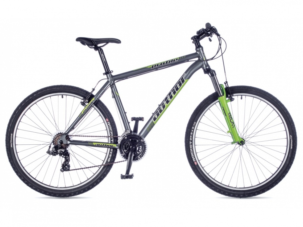 Horské kolo Author Profile se představuje na větších kolech o průměru 27.5". Tento úvodní model kategorie MTB 27.5 stojí na pevném duralovém rámu a odpružené vidlici RST Gila (100mm), dále nabízí komponentové osazení SHIMANO, 21 rychlostí, pohodlné sedlo Author Courier či pláště Author ROCKET. Profile je cenově dostupnou volbou a zároveň v sobě díky průměru kol skrývá velmi dobré jízdní vlastnosti. Průměr 27.5 palce vytváří ideální poměr mezi akcelerací, trakcí a ovladatelností, a stal se tak novým standardem ve světě MTB.