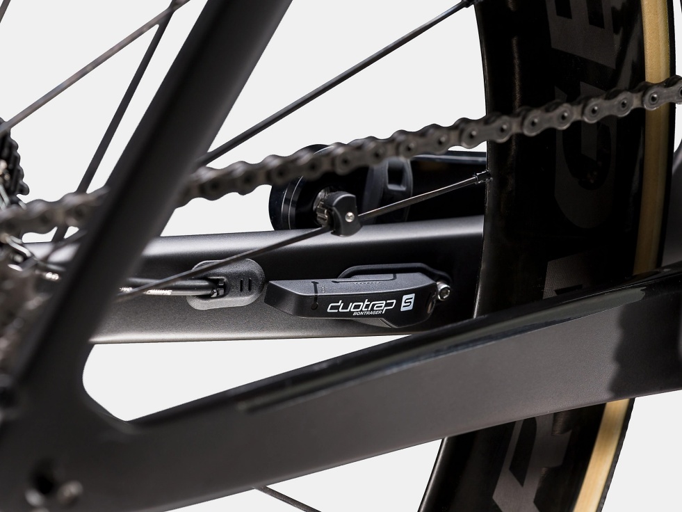 Integrované čidlo Bontrager DuoTrap S bezdrátově přenáší signály ANT+ a Bluetooth® Smart do počítače či telefonu. Snadno použitelné čidlo lze rychle připevnit a pasuje přímo do řetězové vzpěry vybraných kol Trek. Zachová celkový elegantní vzhled, jakož i aerodynamické vlastnosti.