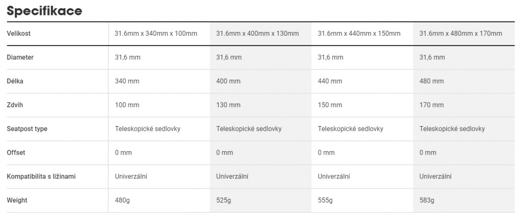 Seatpost type | Teleskopické sedlovky | Teleskopické sedlovky | Teleskopické sedlovky | Teleskopické sedlovky |