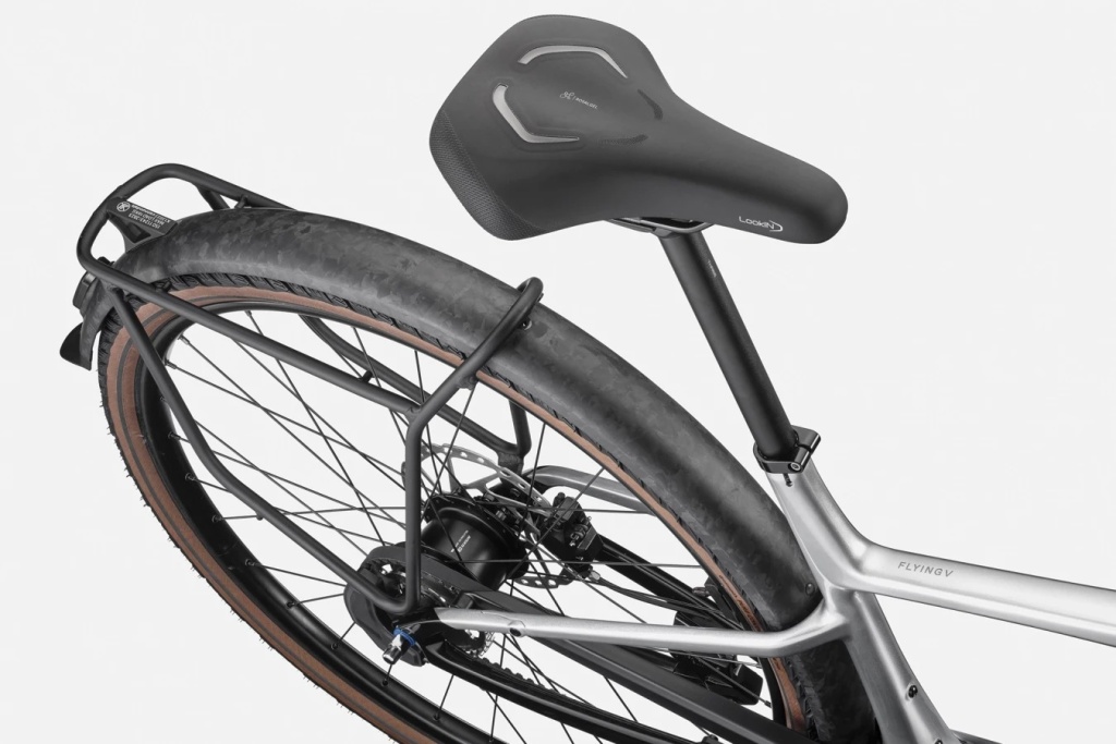 | Rám | FlyingV, lightweight carbon construction, internal downtube battery, integrated cable routing, 135mm dropout spacing, 1.5" headtube, flat mount disc, removable kickstand mount (40mm Pletscher-style), hidden holder for bluetooth tracking device (Chipolo, Airtag, etc) |