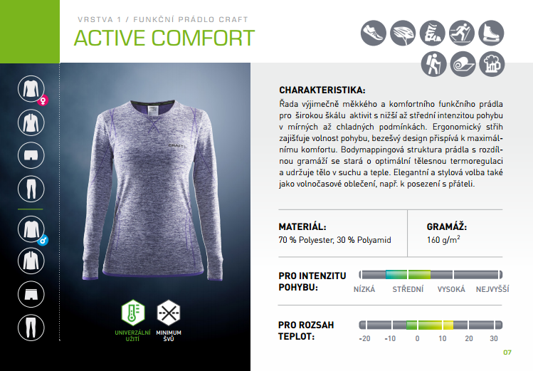 CRAFT patří mezi světovou špičku ve vývoji funkčního prádla – tedy první vrstvy, která je v přímém kontaktu s pokožkou. Jejím úkolem je odvádět vlhkost od těla a pomáhat udržet správnou teplotu při různých intenzitách pohybu a v různých klimatických podmínkách.