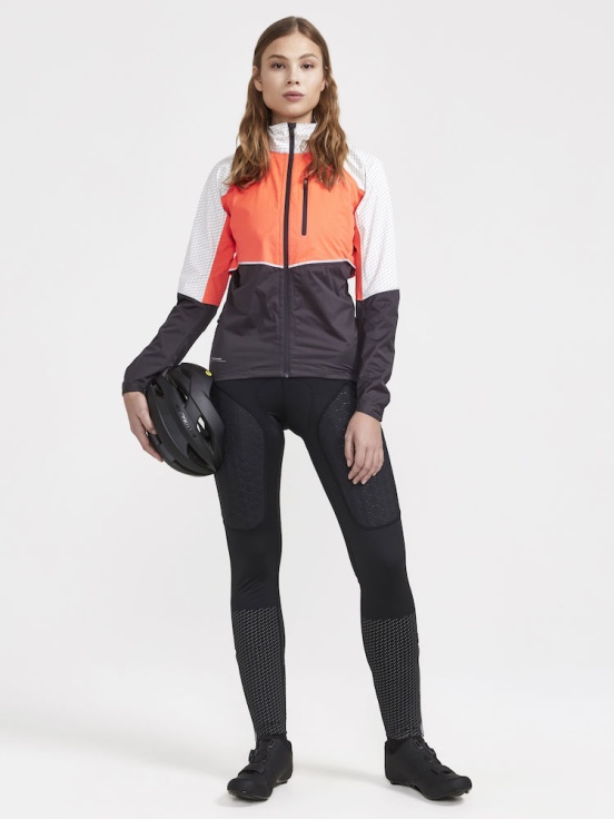 Dámská lehká větru a vodě odolná bunda CRAFT ADV BIKE Hydro Lumen s četnými reflexními prvky pro maximální bezpečnost určená pro jízdu v chladném deštivém počasí.