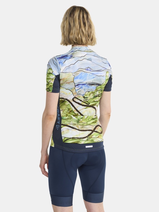 Dámský, technicky pečlivě propracovaný cyklistický dres CRAFT ADV Endur Graphic s atraktivním barevným potiskem oblíbených cyklistických destinací - CHAMPS - ÉLYSÉES, KOPPENBERG, SA CALOBRA