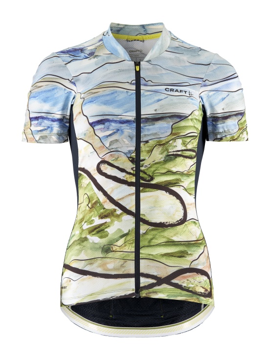 Dámský, technicky pečlivě propracovaný cyklistický dres CRAFT ADV Endur Graphic s atraktivním barevným potiskem oblíbených cyklistických destinací - CHAMPS -…