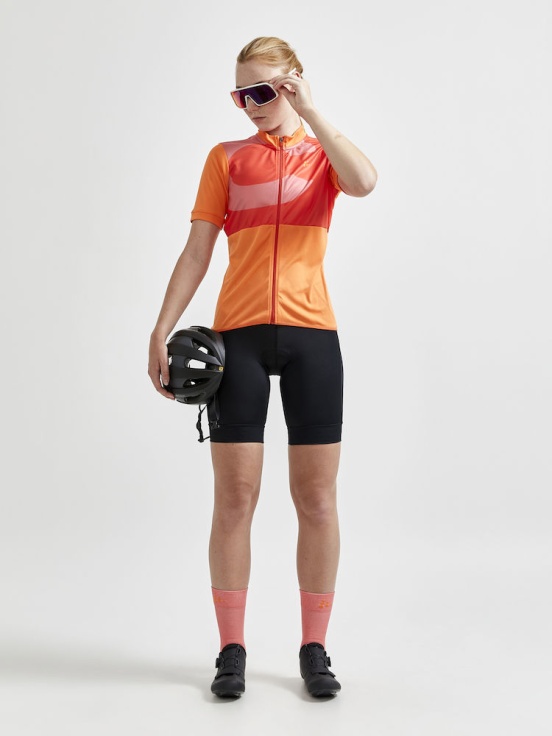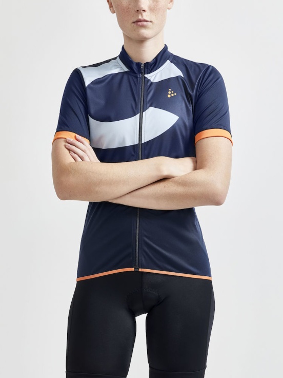 Dámský cyklodres CRAFT CORE Endur Logo volnějšího střihu s celopropínacím zipem.