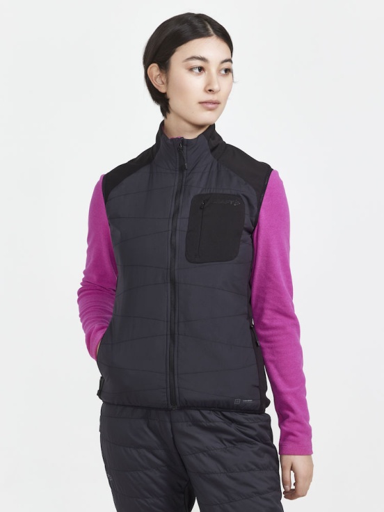 Dámská vesta s mírným zateplením na přední straně určená primárně pro běžecké lyžování.