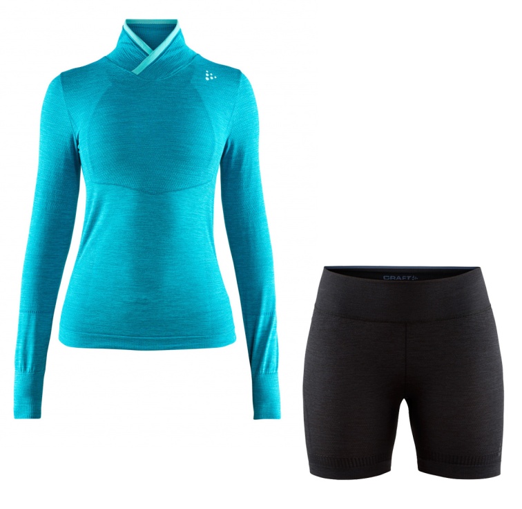 Dámské funkční triko s módním křížením stojáčku u krku + boxerky jsou určené pro širokou škálu sportovních aktivit v mírně chladném až chladném počasí. Díky módnímu designu s decentním melírem je vhodné také na běžné nošení.