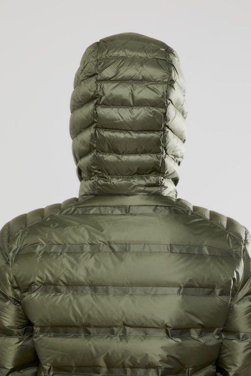 Dámská prošívaná bunda s kapucí CRAFT Lightweight Down zateplená kachním peřím je určená pro ty, kteří se potřebují před a nebo po tréninku či závodě zahřát. Lze ji použít i pro běžné nošení.