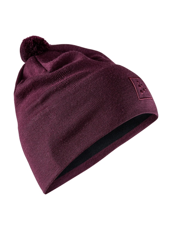 Pletená tréninková čepice s podšívkou kolem čela a s malou bambulí.