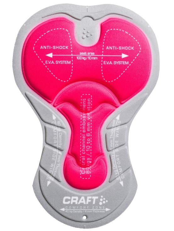 Cyklokalhoty jsou vybaveny cyklistickou vložkou Craft Performance, která je třívrstvá, strečová ve všech směrech, bezešvá, s antibakteriální úpravou, střihově řešená zvlášť pro ženy a muže. Vložka je laserově střižená, což zabraňuje vzniku přetoků a zvyšuje tak komfort jezdce. Na dvou oddělených místech je použit anti-shock systém prostřednictvím pěny EVA. Materiály a pěny nejvyšší kvality certifikované Oeko-Tex.