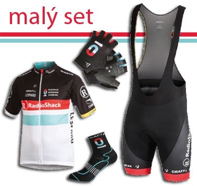 Malý set cyklistického oblečení v barvách profesionálního teamu RadioShack Nissan TREK.