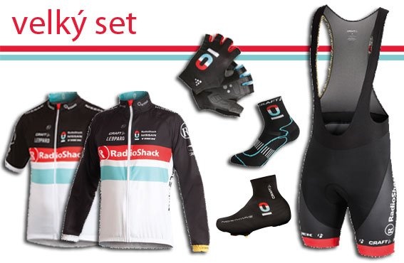 Velký set cyklistického oblečení v barvách profesionálního teamu RadioShack Nissan TREK.