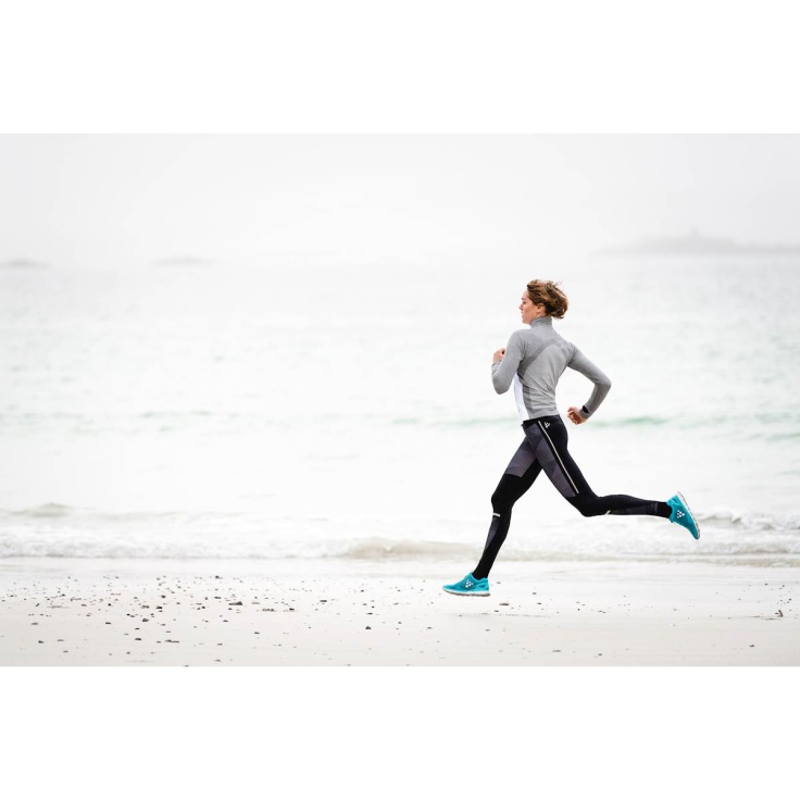 Dámská technická běžecká bunda s membránou následující nejnovější trendy v používání pletenin s bezešvými přechody. Ideální pro podzimní nebo jarní běhání.