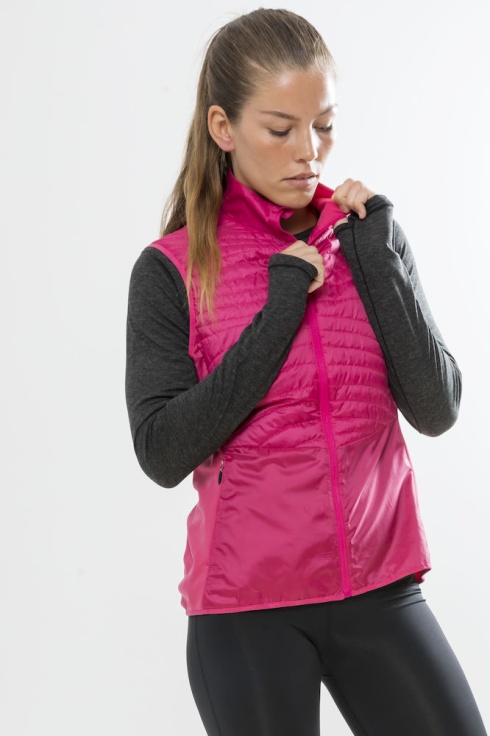 Dámská prošívaná lehce zateplená vesta určená primárně na běh v chladnějších podmínkách.