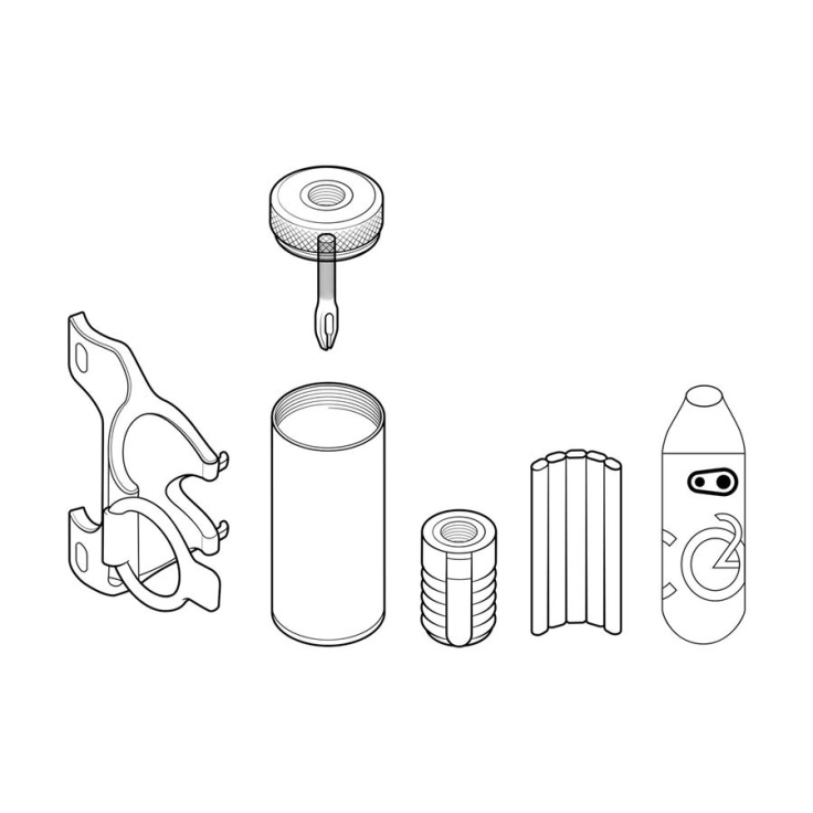 je také šikovný držák na rám pod košík. Bombičku CO2 (není součástí