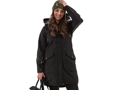 Dámský celorozepínatelný kabát po kolena, odolný větru i dešti.