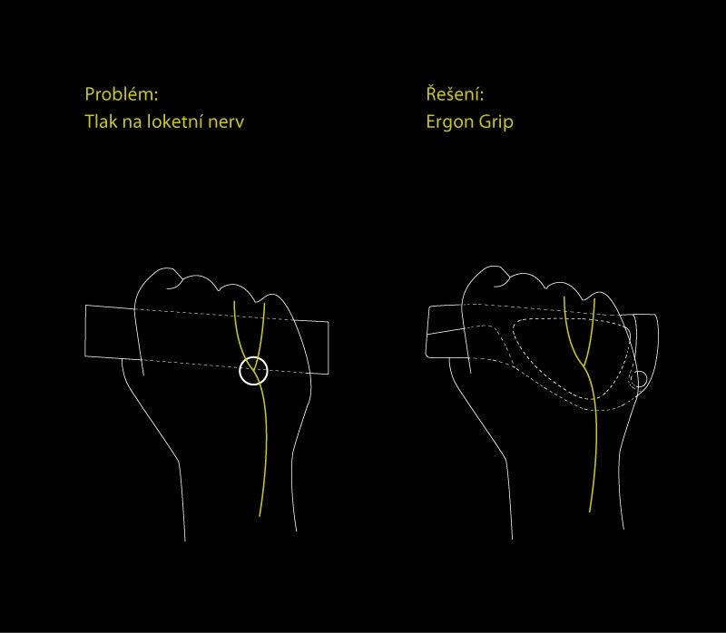 Abyste si udrželi dokonalou kontrolu nad kolem, neměly by vaše ruce zcela obepínat grip, proto Ergon nabízí mnoho gripů ve dvou velikostech - Small a Large. Rozdíl se týká šířky gripu (velikosti ruky), což znamená, že větší ruka bude mít pozitivnější usazení na silnějším gripu, zatímco menší ruka se lépe přizpůsobí menšímu gripu. Pro ruku/rukavici velikosti 6,5 až 8,5 doporučujeme Small, pro 8,5 až 10,5 je obvykle lepší Large.