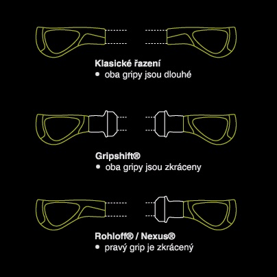 Abyste si udrželi dokonalou kontrolu nad kolem, neměly by vaše ruce zcela obepínat grip, proto Ergon nabízí mnoho gripů ve dvou velikostech - Small a Large. Rozdíl se týká šířky gripu (velikosti ruky), což znamená, že větší ruka bude mít pozitivnější usazení na silnějším gripu, zatímco menší ruka se lépe přizpůsobí menšímu gripu. Pro ruku/rukavici velikosti 6,5 až 8,5 doporučujeme Small, pro 8,5 až 10,5 je obvykle lepší Large.