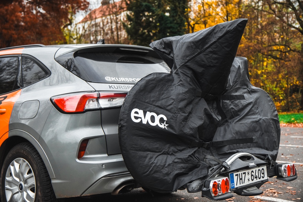 BIKE RACK COVER ROAD je vhodný jak pro zavazadlový, tak pro závěsný nosič kol a dodává se s praktickou taškou pro úsporu místa při skladování.