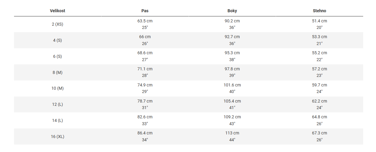 Tabulky velikostí se může v někerých případech lišit od skutečnosti.