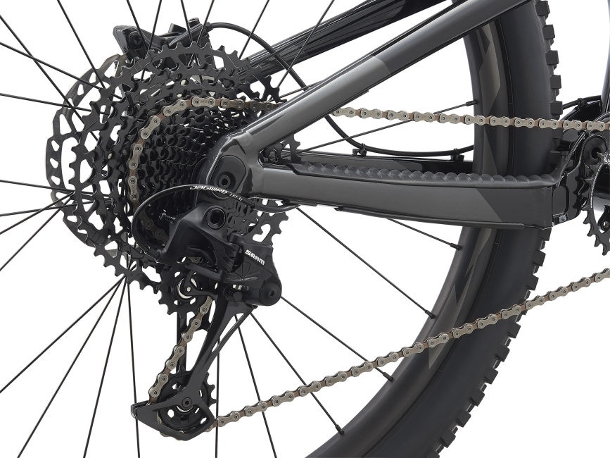Úplně nový člen „rodiny“ Trance je postaven na hliníkovém rámu z naší vysoce kvalitní slitiny ALUXX SL, která je zárukou toho, že rám bude velmi lehký, ale zároveň dostatečně tuhý a pevný. Horní vahadlo odpružení Maestro je karbonové pro vyšší tuhost i pevnost a zároveň nižší hmotnost (technologie Advanced Forged Composite). Geometrie kola je od základu navržena pro 29“ kola při dodržení všech standardů pro moderní trail bike. Oproti modelu Trance 29 je navýšen zdvih – vpředu ze 130 na 150 mm a vzadu ze 115 na 135 mm. To ale není vše – díky tzv. flip-chipu si můžete snadno upravit geometrii rámu pro váš styl jízdy nebo terén, jakým nejčastěji jezdíte. Úhel hlavové trubky můžete mít strmější (66,2 stupně) nebo položenější (65,5 stupně), úhel sedlové trubky je potom 77,9 nebo 77,2 stupně, což se projeví také na výšce středu šlapání (BB drop), která je buď 30 nebo 40 mm. Přímé uchycení tlumiče do horního vahadla (tzv. trunnion mount) přináší ještě vyšší citlivost odpružení a lepší útlum. Pokud jde o výbavu, Trance X 29 má vše, co na pořádném trail biku očekáváte – řazení 1x12 s širokým rozsahem převodů, zapletená bezdušová kola s širokými ráfky, výkonné 4-pístkové brzdy a pochopitelně i teleskopickou sedlovku s vnitřně vedeným bowdenem.