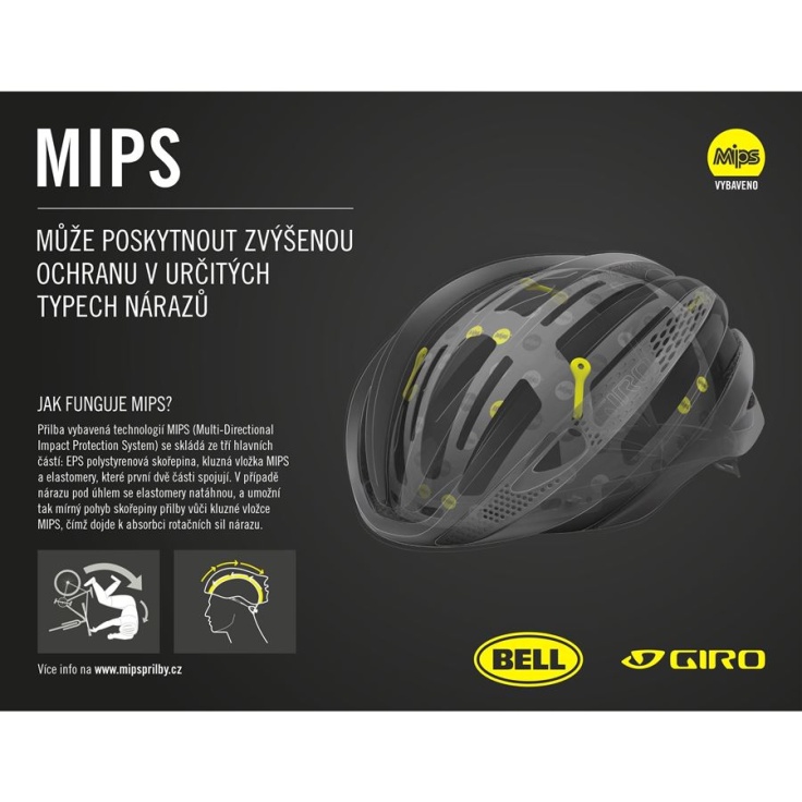 Všechny přilby Giro jsou designovány tak, aby pohltily co nejvíce energie při nárazu, a splňují platnou evropskou normu: EN 1078. Cílem nové technologie MIPS je eliminovat rotační síly, které působí na hlavu v případě pádu. Při nárazu pod jakýmkoliv úhlem systém MIPS umožní, aby se EPS skořepina přilby pootočila nezávisle okolo hlavy jezdce. Přestože je tento pohyb pouze v řádu několika milimetrů, věříme, že technologie MIPS výrazně snižuje množství rotační síly, která by jinak mohla být přenesena až na mozek.