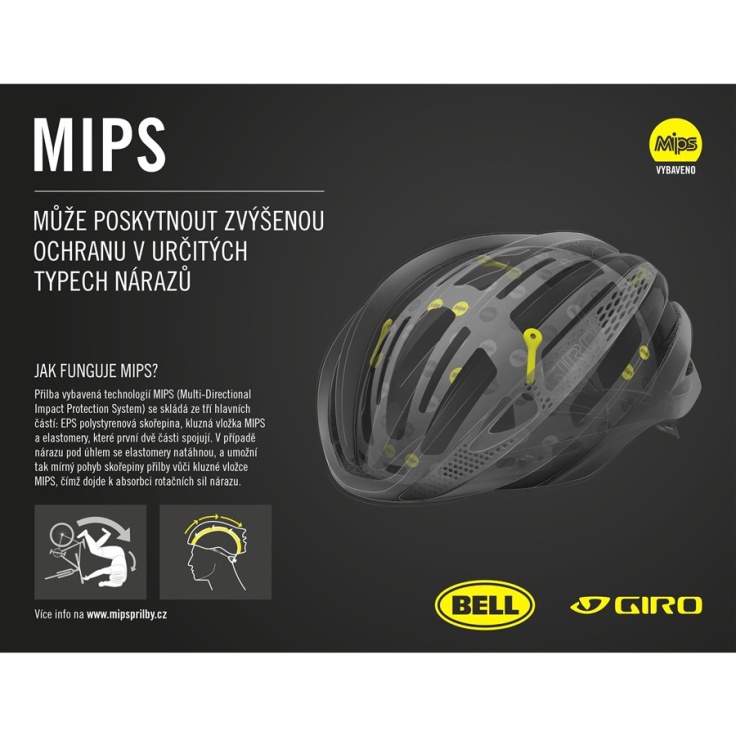 Všechny přilby Giro jsou designovány tak, aby pohltily co nejvíce energie při nárazu, a splňují platnou evropskou normu: EN 1078. Cílem nové technologie MIPS je eliminovat rotační síly, které působí na hlavu v případě pádu. Při nárazu pod jakýmkoliv úhlem systém MIPS umožní, aby se EPS skořepina přilby pootočila nezávisle okolo hlavy jezdce. Přestože je tento pohyb pouze v řádu několika milimetrů, věříme, že technologie MIPS výrazně snižuje množství rotační síly, která by jinak mohla být přenesena až na mozek.