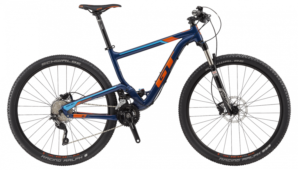 Helion je celoodpruženým XC kolem, který jede lehce do kopce a ještě lépe z kopce. Dostupný jak na kolech o rozměru 29”. Je vybaven 100 mm zdvihu vidlice, 110 mm zdvihu zadní stavby, krátkým představcem a progresivní geometrií GT.