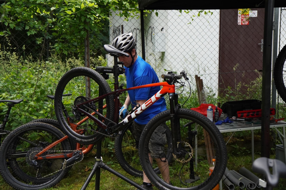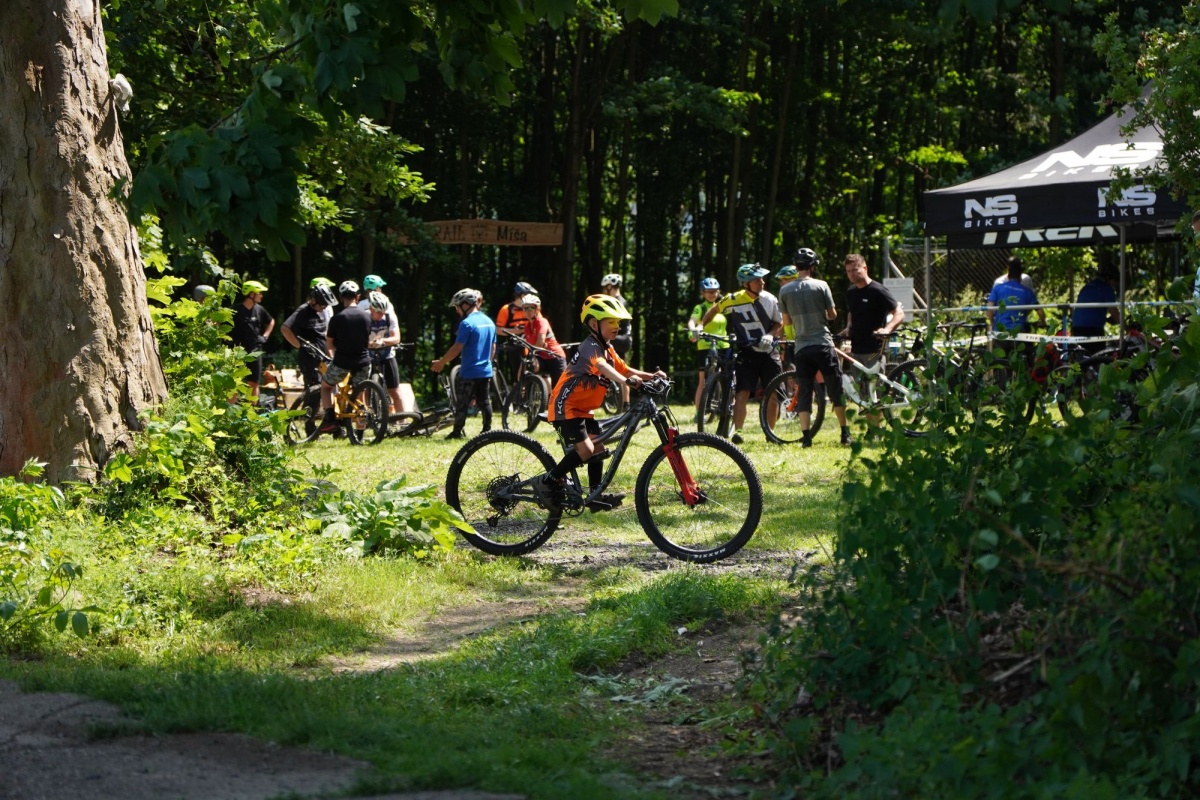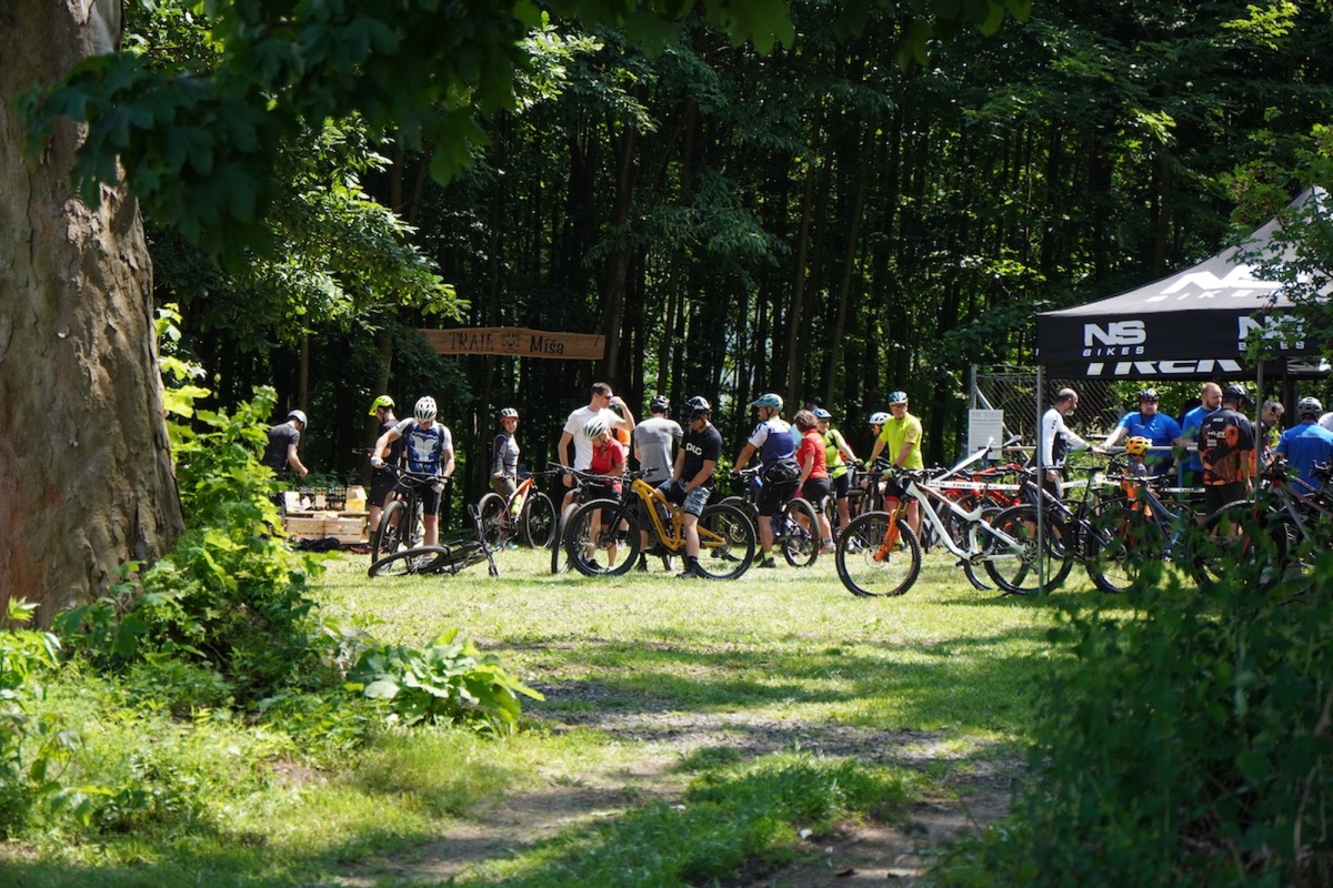 Kolem 13té hodiny se na Táborský vrch u trailu začali sjíždět první testeři. V tu dobu už byly nachystané test biky od značky Trek, NS Bikes a Rondo. Než začali ofiko vyjížďky lidé testovali v okolí dětského trailu, což bylo taky přínosem. Adélka s Péťou zajistili samoobslužný bar, takže účastníci měli k dispozici komplet občerstvení.