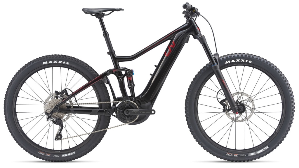 Hliníkový rám ALUXX SL s dámskou trail/enduro geometrií je vybaven odpružením Maestro a poskytuje zdvih 140 mm, zdvih vidlice je 150 cm. Uchycení zadního tlumiče Trunnion Mount přináší vysokou citlivost odpružení, karbonové horní vahadlo zvyšuje tuhost celého pružícího aparátu. Středový motor Giant SyncDrive Pro Yamaha (80 Nm) má ve srovnání s motorem „Sport“ kompaktnější rozměry a nižší hmotnost, nabízí vyšší maximální podporu (až 360 %) a zvládne i vyšší kadenci (až 120 otáček za minutu). Okamžitou odezvu na vaše šlapání a efektivní distribuci energie z baterie zajistí 4-senzorová technologie Giant PedalPlus. Plně integrovaná baterie umístěná zespodu dolní rámové trubky nabízí kapacitu 500 Watthodin. A díky tomu, že baterie je umístěná zespodu, tak na horní části spodní rámové trubky je místo na košík na lahev. V případě, že baterii zcela vyčerpáte, nová šestiampérová rychlonabíječka SmartCharger vám baterii za 90 minut nabije na 60 % kapacity. Pro volbu jízdních režimů slouží ovládací jednotka RideControl ONE, která obsahuje dominantní ergonomická tlačítka pro přepínání jízdních režimů (na výběr jich máte 5), LED diody pro zobrazení stavu baterie a zvoleného jízdního režimu a nechybí ani tlačítko funkce walk assist. Díky Bluetooth konektivitě pak můžete vaše kolo spárovat s aplikací Giant RideControl, kterou si stáhnete do vašeho chytrého telefonu (pro Android a iOS) – tato aplikace vám pak nabídne spoustu dalších užitečných funkcí, jako například tuning (vyladění) jízdních režimů nebo fitness funkce včetně analýzy vašeho výkonu. Oba nabízené modely jsou osazeny širokými ráfky a plášti, aby jízda byla pohodlná, zábavná i bezpečná. A chybět nesmí ani dnes tolik oblíbená teleskopická sedlovka s vnitřně vedeným ovládáním, kterou oceníte zejména v prudkých sjezdech – sedlo vám totiž ve snížené poloze nijak nepřekáží a můžete snadno přenést těžiště nad zadní kolo. A proč byste si měli pořizovat celoodpružené elektrokolo, i když třeba nejezdíte v těžkém terénu? Představte si, že by vaše auto, se kterým jezdíte převážně po silnicích a dálnicích, nemělo tlumiče – auto je těžké a musí tlumit i sebemenší nerovnosti, jinak by se v něm nedalo jet – a s elektrokoly je to podobné, vzhledem k jejich vyšší hmotnosti je zadní tlumič velkým přínosem z hlediska vašeho pohodlí při jízdě. A pro vyšší komfort i bezpečnou jízdu v terénu jsou důležité také širší ráfky a pláště (tady se opět nabízí souvislost s auty).