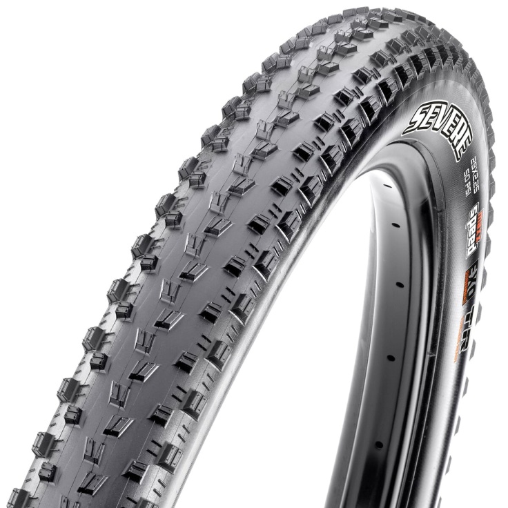 Maxxis Severe je nově vyvinutý plášť určený pro XC závody zejména v mokrých a blátivých podmínkách. Aby se zabránilo hromadění bláta, používá vzorek běhounu malé špičaté knoflíky rozmístěné široce od sebe.