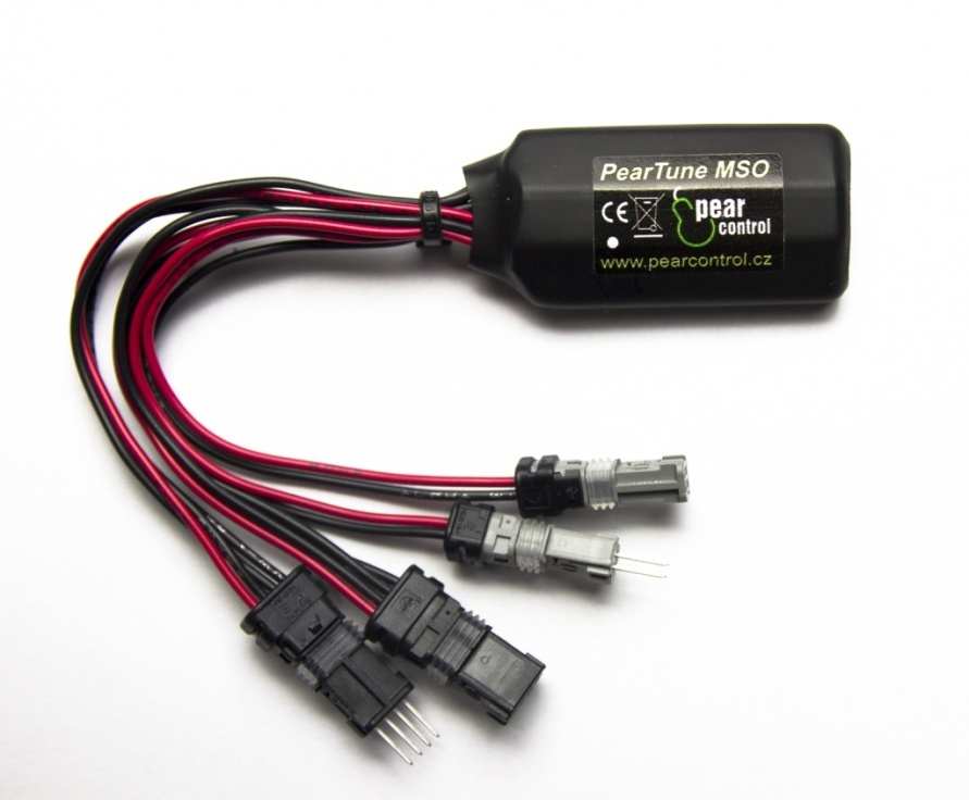 PearTune je zapojeno mezi senzor tachometru a jednotku motoru a mezi display a